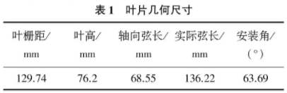 所研究的葉片葉型數據參考文獻[16]的葉片平面坐標和高度數據,通過Workbench-DM建模軟件中的樣條線(curve)擬合而成,然后經放樣計算獲得整個葉片的三維模型。該葉片為MarkII型導向葉片,其幾何參數如表1所示。