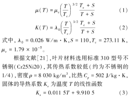式中,T0為燃氣入口總溫,Ts表示固體溫度,Ttu為tu帶有涂層時的葉片溫度Tm為無涂層葉片表面溫度,max為無涂層葉片最大溫度,根據仿真結果,其值取為688K。