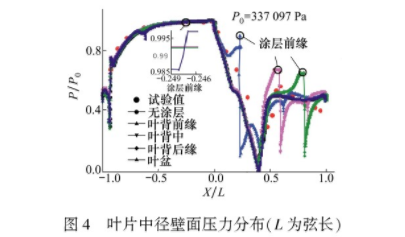 基于熱流耦合技術研究熱電偶安裝涂層對渦輪導向葉片溫度測量精度的影響,分別比較涂層厚度、位置及形狀對常規測量點附近氣動參數及溫度的影響,主要結論如下: