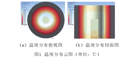 圖1為文獻[4]基于ANASYS有限元分析方法,對氣氛燒結爐的溫度場進行的模擬與分析。而碳棒加熱有同樣的溫度場分布。在窯爐燒結過程中,碳棒通過電流加熱升溫,向周圍以熱輻射的方式傳遞能量,溫度場以碳棒為中心,呈現(xiàn)向周圍逐漸遞減的狀態(tài)。