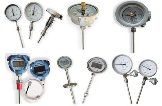 雙金屬溫度計(jì)是一種測(cè)量中低溫度的現(xiàn)場(chǎng)檢測(cè)儀表,是基于繞制成環(huán)性彎曲的雙金屬片組成,其中一端固定,另一端受熱便可帶動(dòng)指針旋轉(zhuǎn),標(biāo)度盤(pán)上便可指出所測(cè)量的介質(zhì)溫度。一般雙金屬溫度計(jì)被用于低溫就地測(cè)量指示溫度,而熱電阻與熱電偶被用于中低溫或者中高溫測(cè)量并輸出信號(hào)進(jìn)入控制系統(tǒng)監(jiān)控。