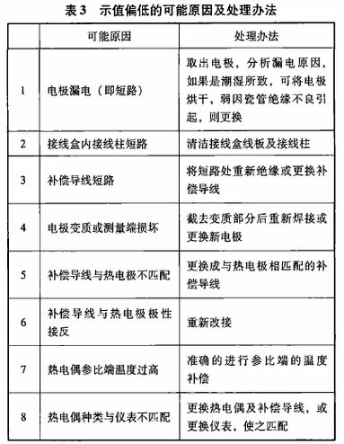 示值偏低的可能性有很多,可能原因及處理辦法,具體見表3.