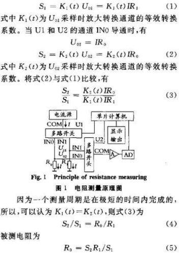 由式(4)、(5)可見,由于采用了與標準信號采樣值比較的方法,且數據采集周期極短,使得被測電阻只與標準電阻R、標準校準信號的采樣值S、被測信號的采樣值S;有關,與電流源無關,大大減小了放大采樣通道的放大倍數、零點漂移和非線性的影響,因此,提高了測量精度,實現了電阻值測量,測量精度主要取決于AD轉換器的分辨率。