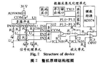 熱電阻實現精度高、線性溫度測量問題,給出了一種實用的測量裝置。該裝置由熱電阻、AD590M、標準電阻、放大器、AD轉換器、數據采集與處理系統、數碼顯示和串行輸出端口等組成。裝置采用信號比較的方法求出精度高的熱電阻值,再根據熱電阻值的大小查熱電阻分度表求取對應的溫度值,因此實現了真正意義上的線性化,大大減小了放大器溫漂和非線性的影響,并且實現了熱電阻全溫度分度范圍的溫度測量。溫度值由串口榆出和數碼管顯示,采用