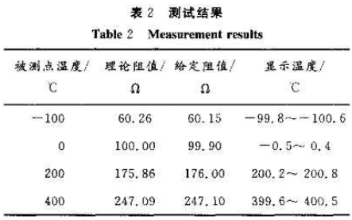 S2是U02的采樣值,取最大值為4096,S3是引線壓降的采樣值,其值很小可以忽略,R1=390.48Ω。uc(S1),uc(S2)、uc(S3)是AD574LD的標準不確定度,其值均為1/(2X4096X√3)。uc(R1)是R1的標準不確定度,R1的最大誤差為0.005Ω,按正態分布,取置信概率為0.997,其值為uc(R1)=0.005/3Ω。將以上數據代人式(14),可得R,的合成標準不確定度uc(Rt)=0.033Ω,按正態分布,取置信概率為0.997,則R,的擴展合成標準不確定度為U=3uc(Rt)=0.10Ω[6,相當于0.34℃。由Rt查表求溫度的誤差是計算R,時的舍人誤差,其值為0.005Ω,相當于0.02℃的誤差。因此裝置的總不確定度由以上2項決定,為0.39℃。不計熱電阻本身誤差時,實際測量誤差在±1℃以內。表2是在給出等百度點上電阻值時的部分測量結果。