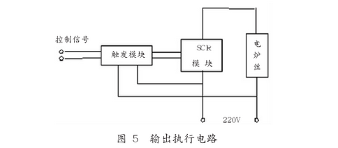 AT89C52對溫度的控制,是通過SCR模塊、觸發模塊及其他輔助器件構成的電路來實現的,如圖5所示。SCR模塊和加熱絲串接在交流220V、50Hz交流市電回路中單片機。(AT89C52控制單元根據被測溫度,輸出相應的電壓或電流信號,改變可控硅管導通角的大小,從而改變加熱電流的大小,進而改變加熱絲功率,以達到調節溫度的目的。