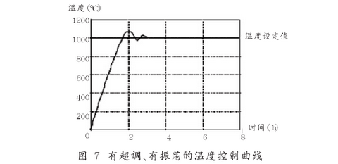 通過測試,選取不同的PD值,其控溫效果不同,主要有3種情況:有超調、有振蕩;無超調、無振蕩;欠調、長時間過渡。最理想的是第2種,即無超調、無振蕩,但過渡時間較長。為了縮短溫度的穩定時間,一般允許有一定的超調量,同時在不同的控溫點,需要選擇不同的PD值,以達到控制的目的。圖7是對檢定爐實際測試的在1000℃時的溫度控制曲線(環境溫度為25℃),在實際運用中取得了良好的效果。