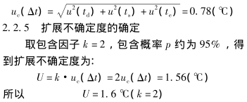 (2)被校儀表顯示分辨力引入的標(biāo)準(zhǔn)不確定度u(td2),采用B類方法評定。被校儀表顯示分辨力為1℃,由儀表分辨力b引入的示值誤差區(qū)間半寬為a=b/2,包含因子k=√3。因此:u(td2)=a/k≈0.29(℃),上述2分量獨立不相關(guān),故